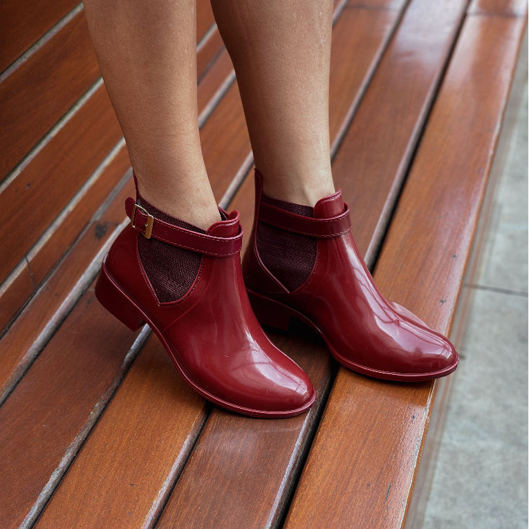 A Bota Galocha Impermeável Estilizada é um modelo de bota tradicional de cano médio confeccionado com o material da famosa e útil galocha para proporcionar, mesmo em dias de chuva e de muita água, estilo, conforto e elegância.